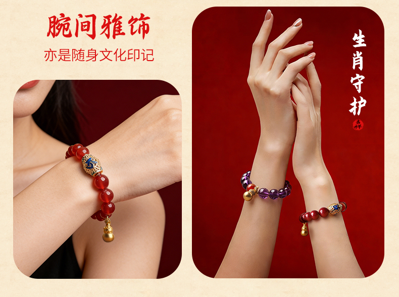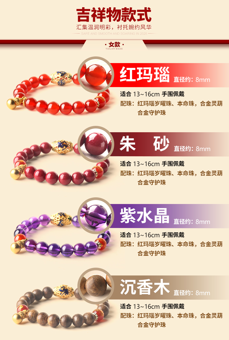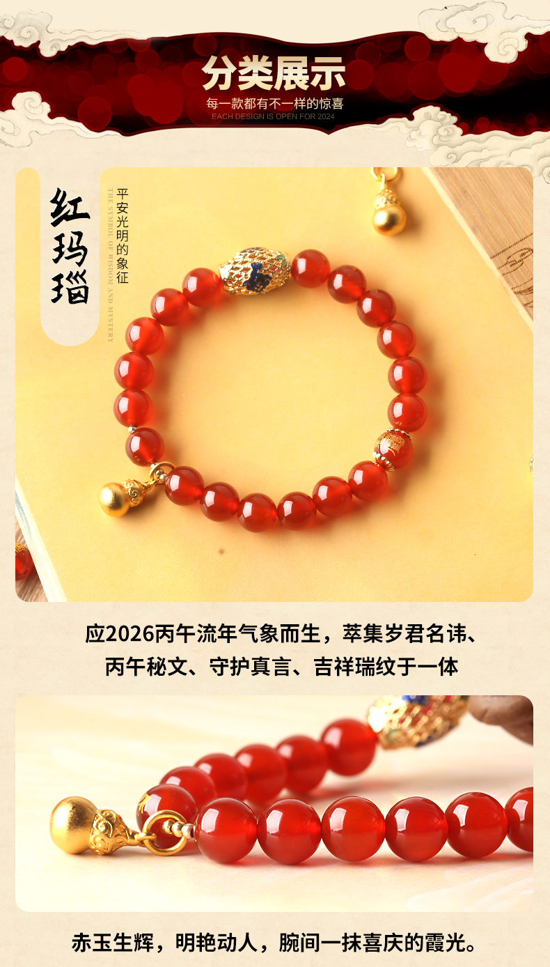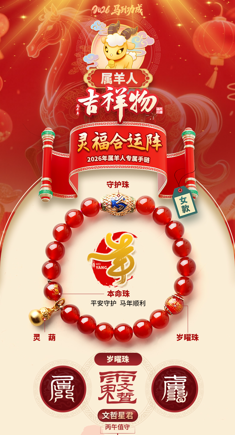 属羊人2026年马年生肖吉祥物手链女款★灵福合运阵★红玛瑙紫水晶朱砂沉香多款本命年犯太岁