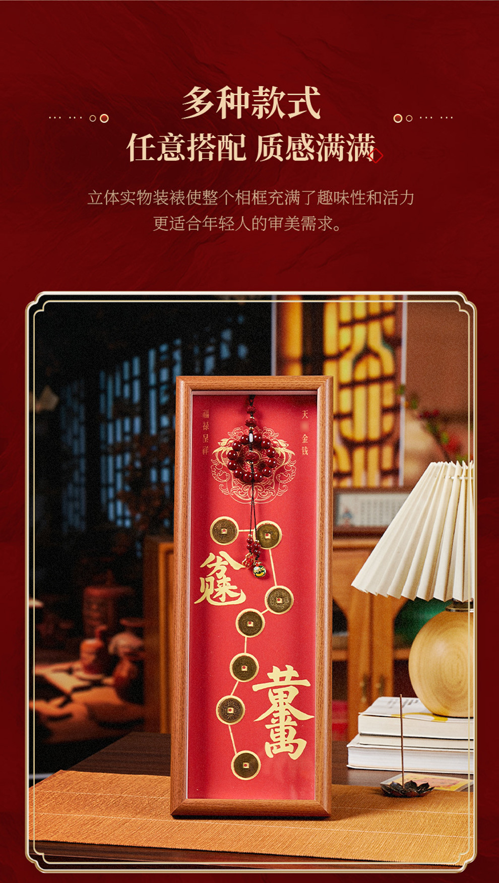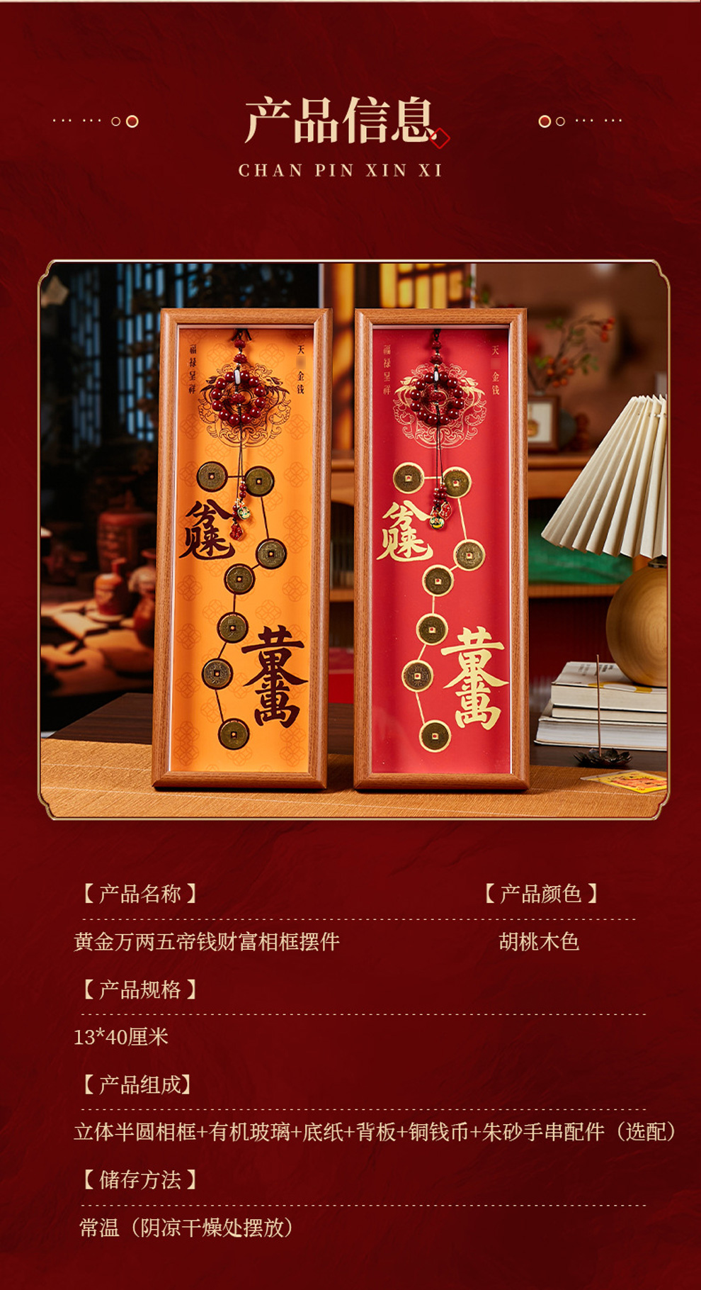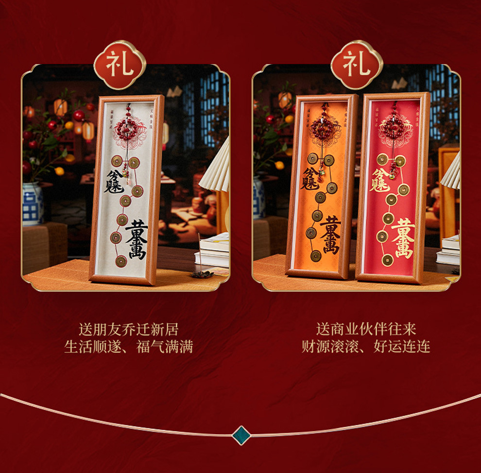 2026丙午马年七星帝钱财库日进斗金黄金万两摆件★财富木质相框桌面摆件
