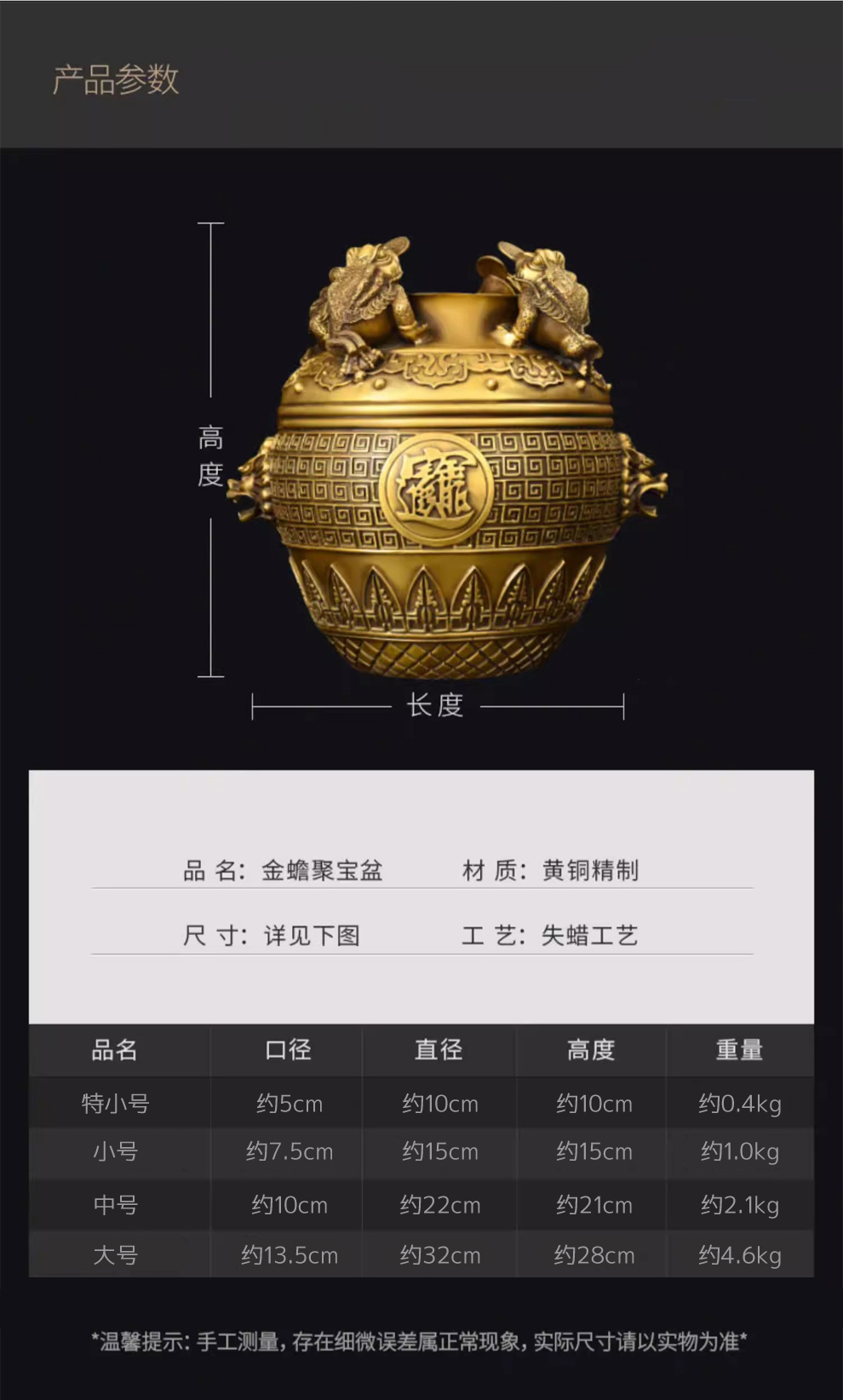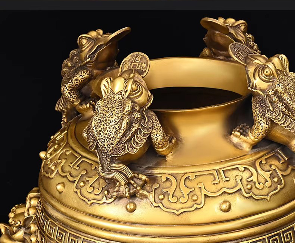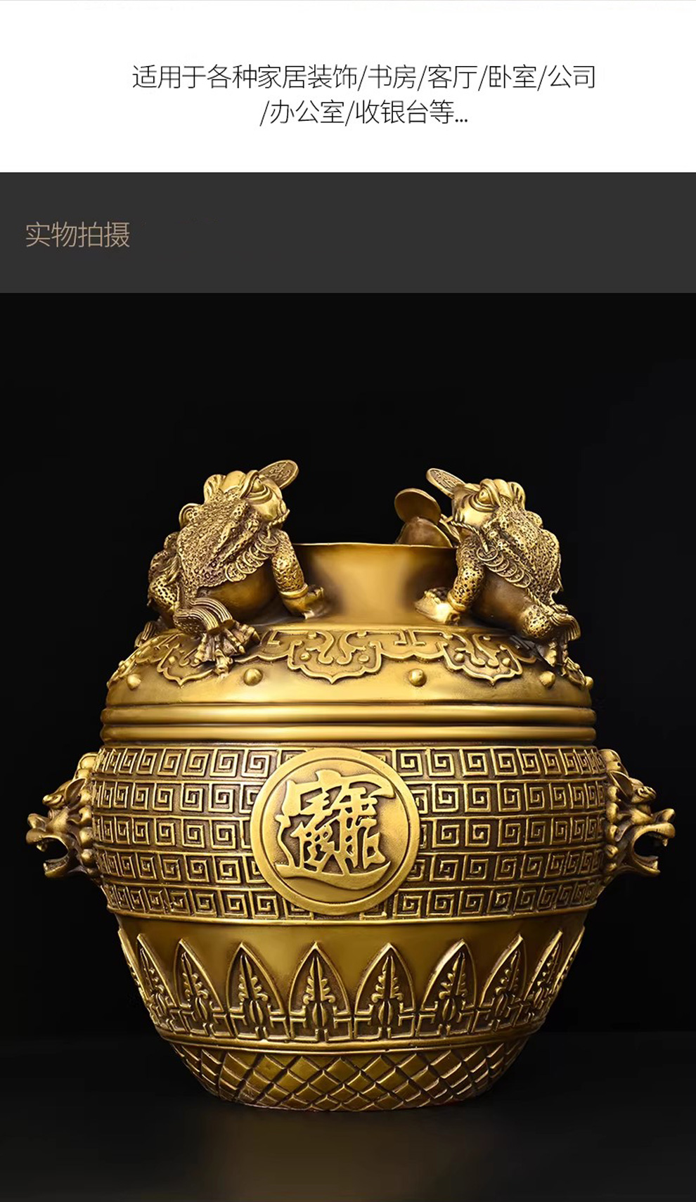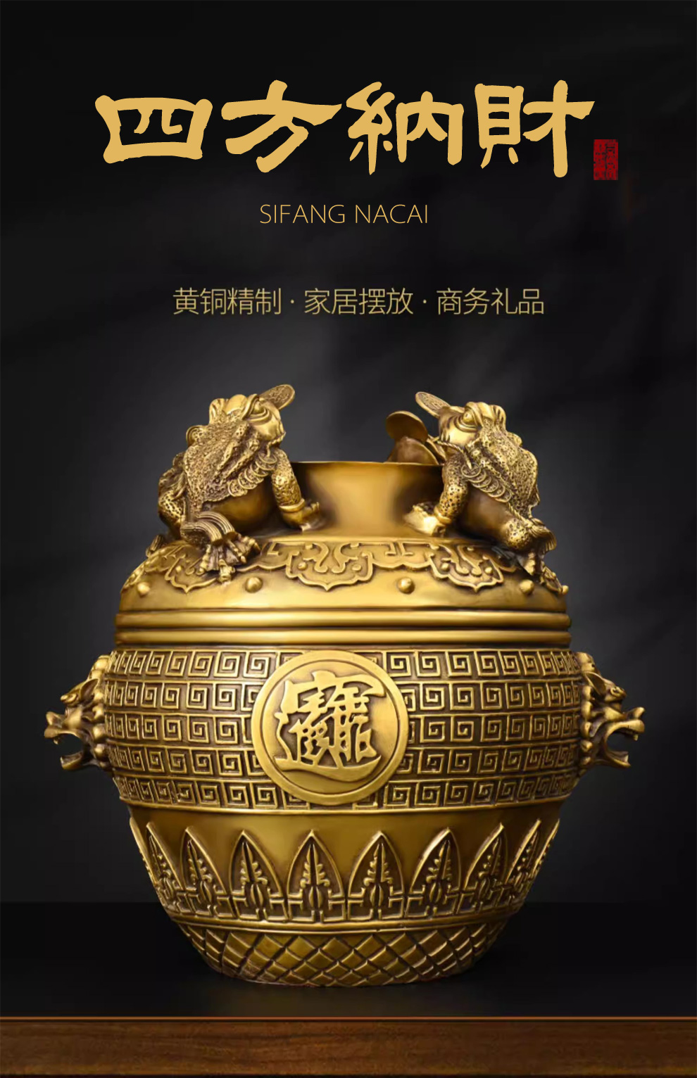四方纳财铜质金蟾聚宝盆存钱罐摆件★黄铜客厅家居摆设装饰品开业礼品