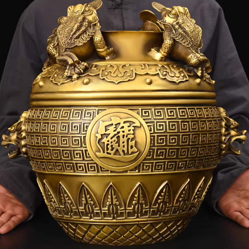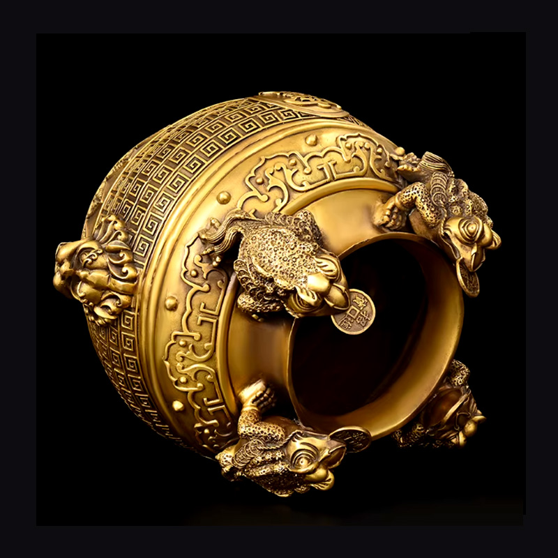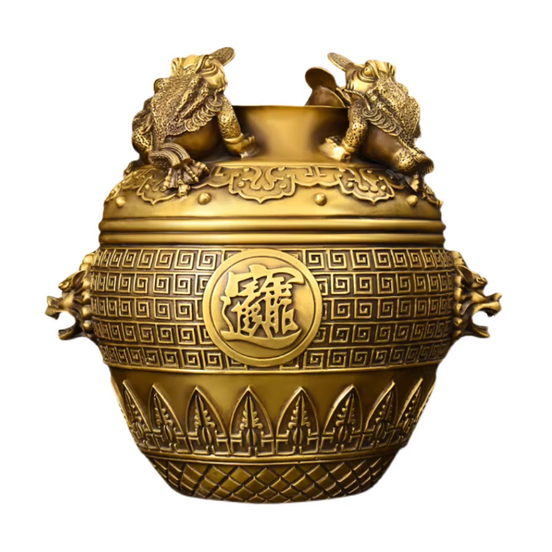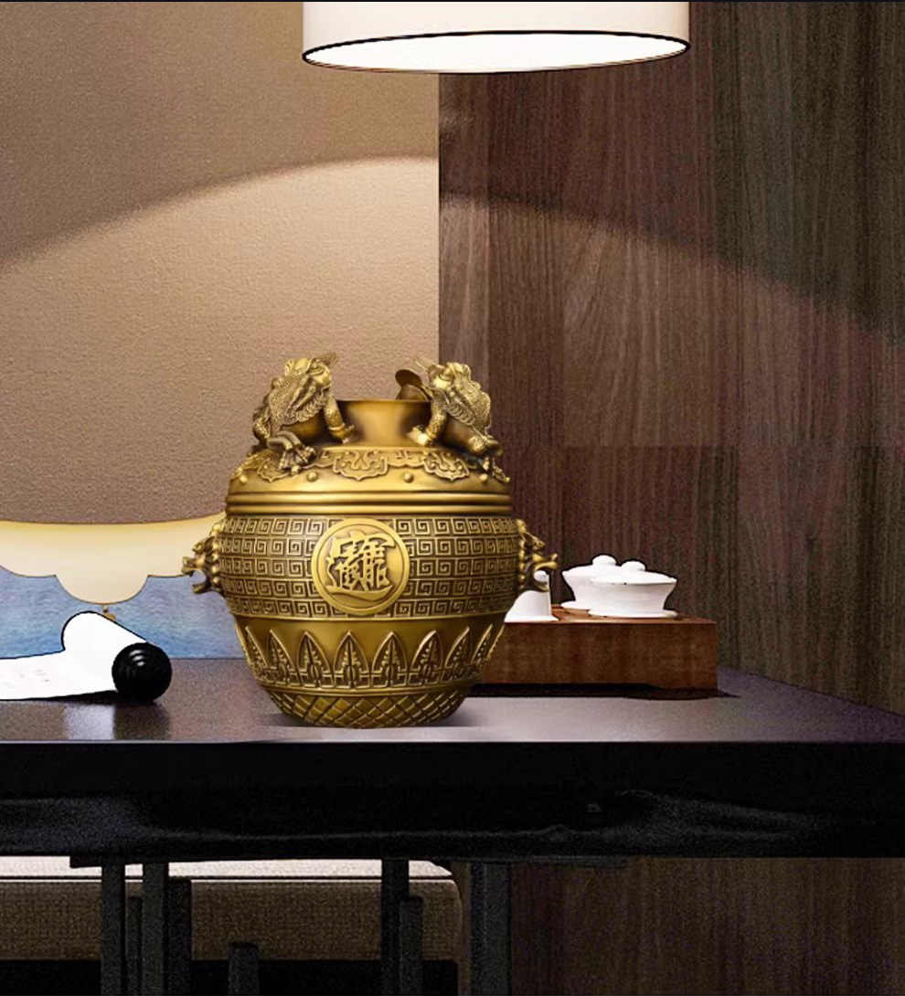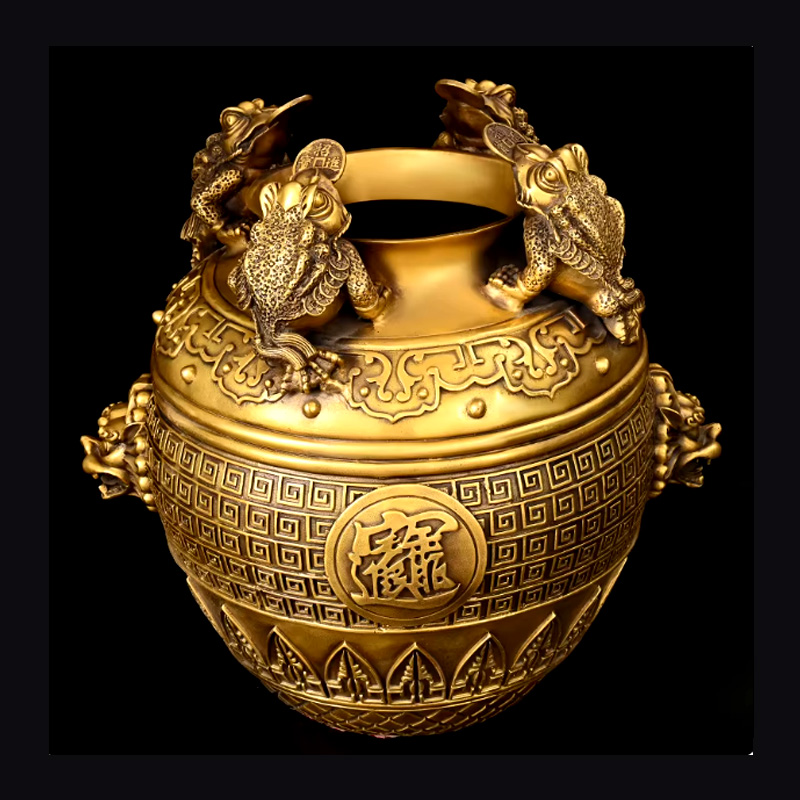 四方纳财铜质金蟾聚宝盆存钱罐摆件★黄铜客厅家居摆设装饰品开业礼品