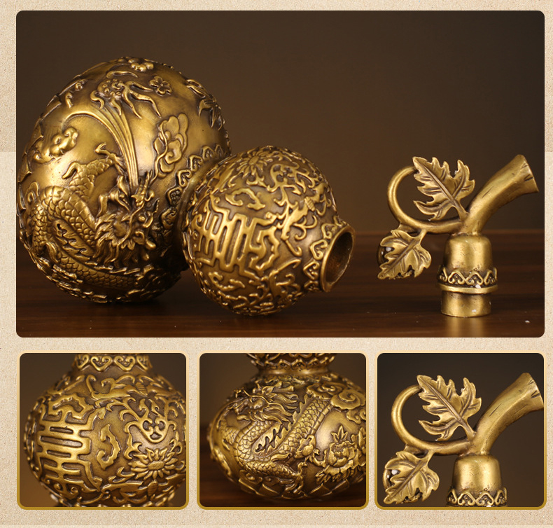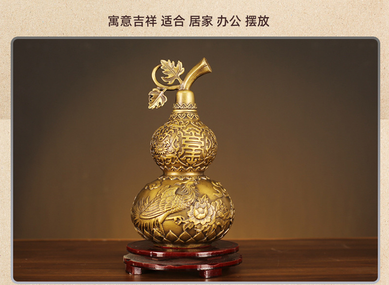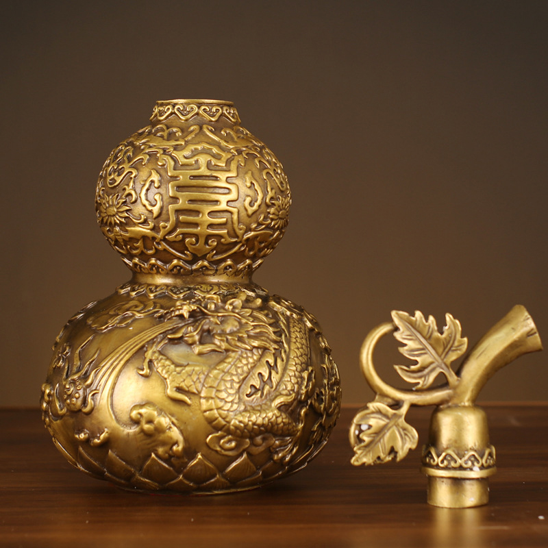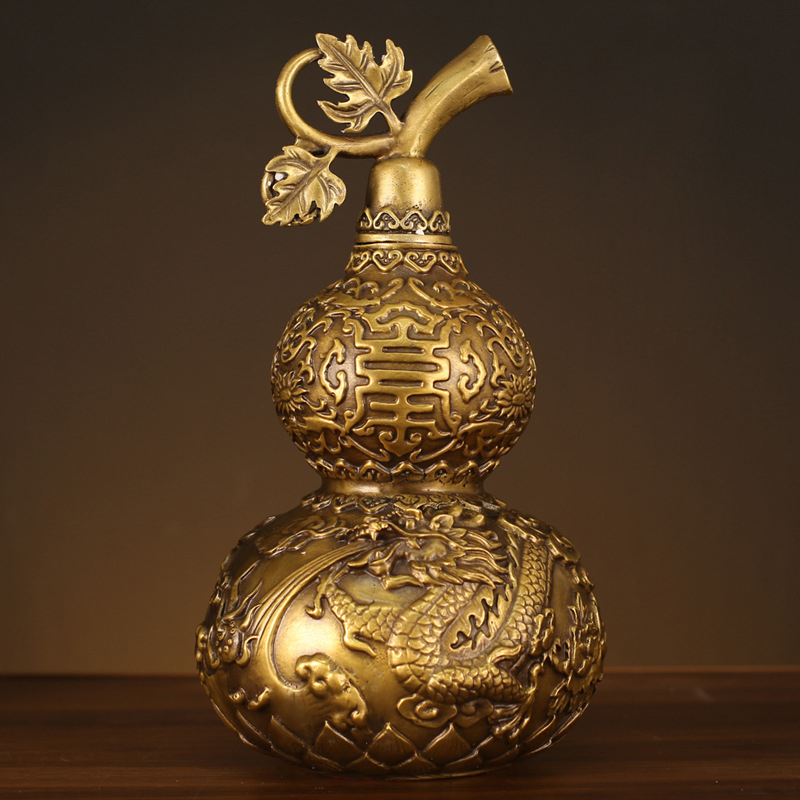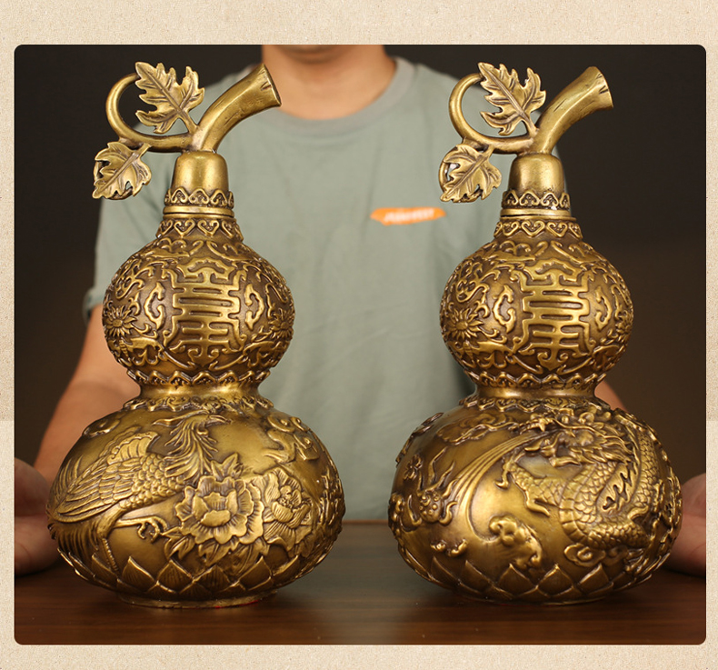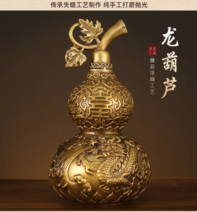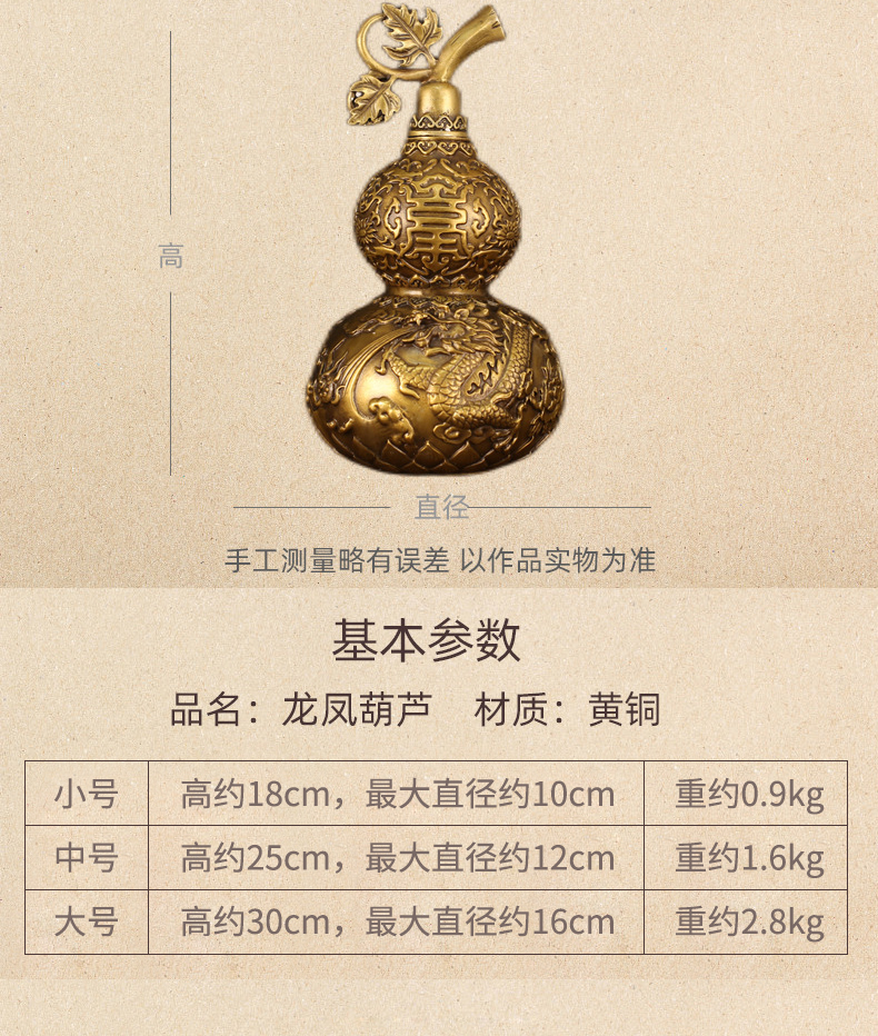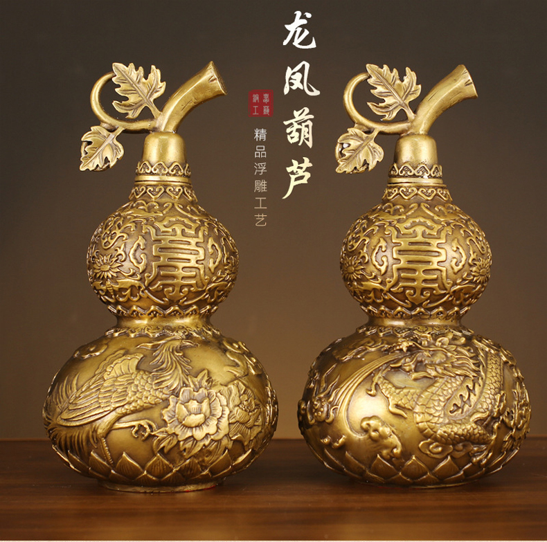 精铜龙凤葫芦摆件★开口葫芦小中大号可选★客厅卧室玄关工艺品家居装饰品