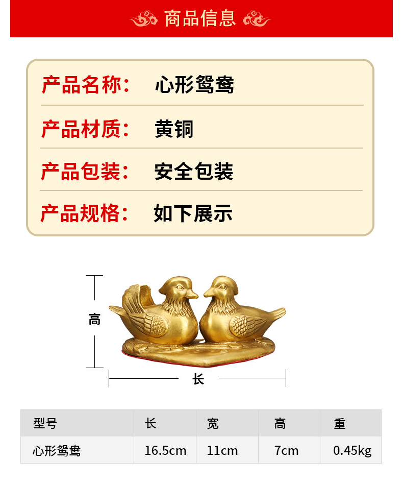 心形鸳鸯黄铜摆件★新婚送礼大堂全铜装饰品客厅新房铜摆饰