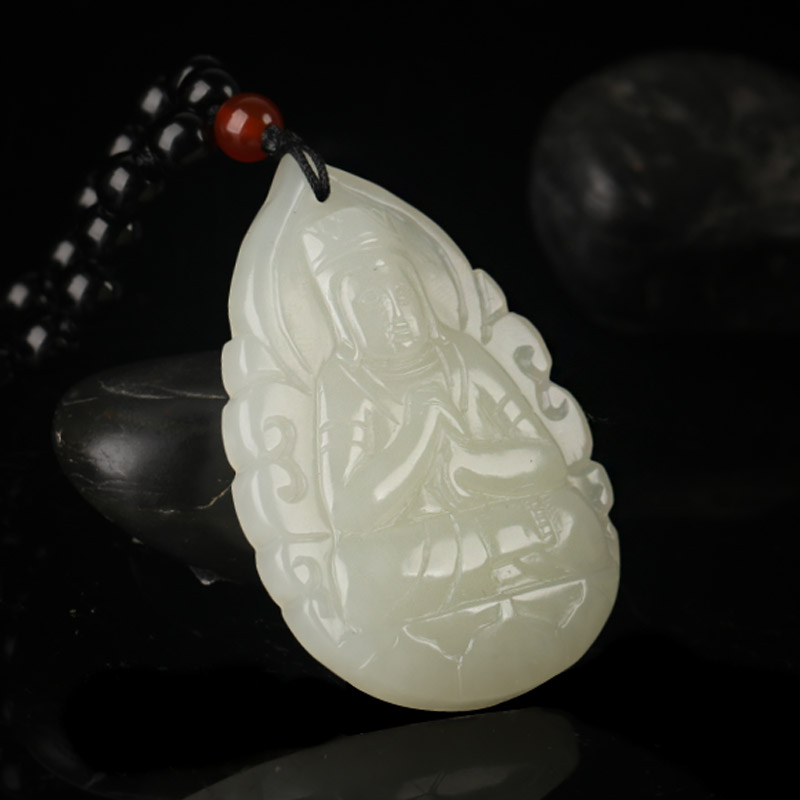 精选和田玉浅黄玉,细腻温润,玉料干净,半通透,手工雕刻,工艺精美、大方、庄严,栩栩如生。