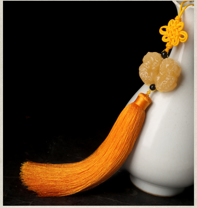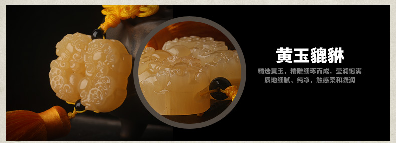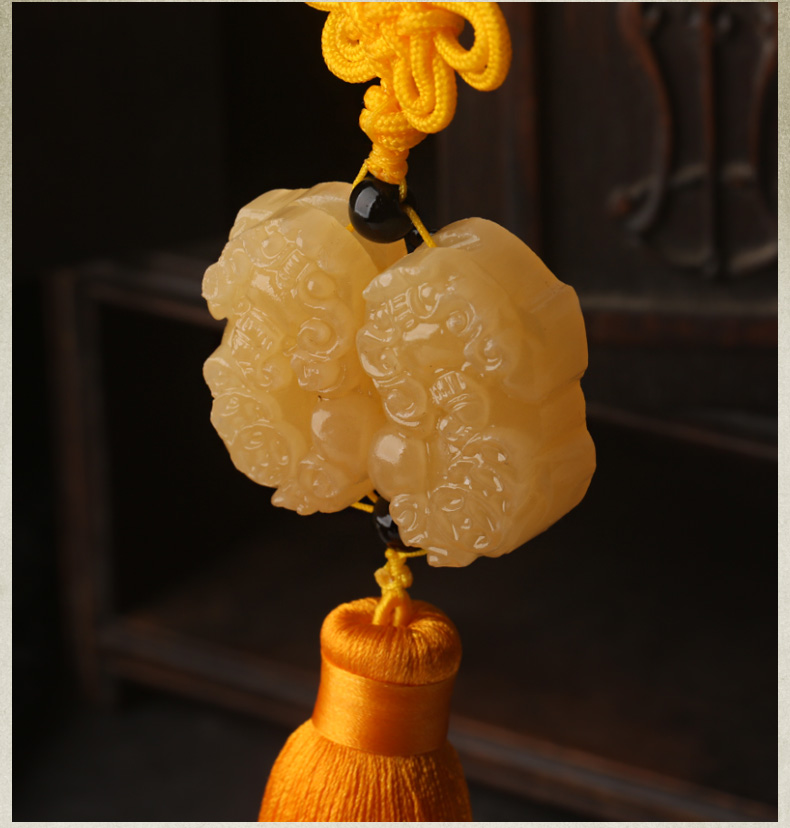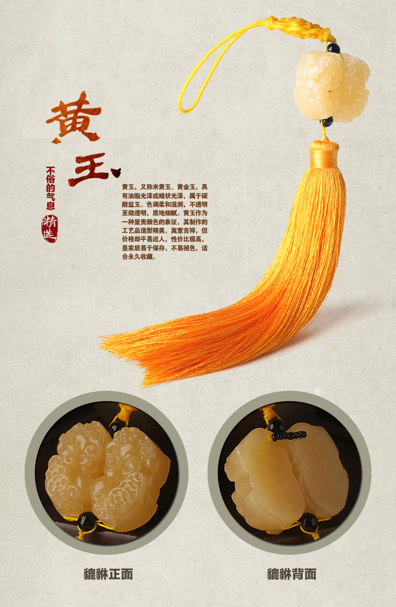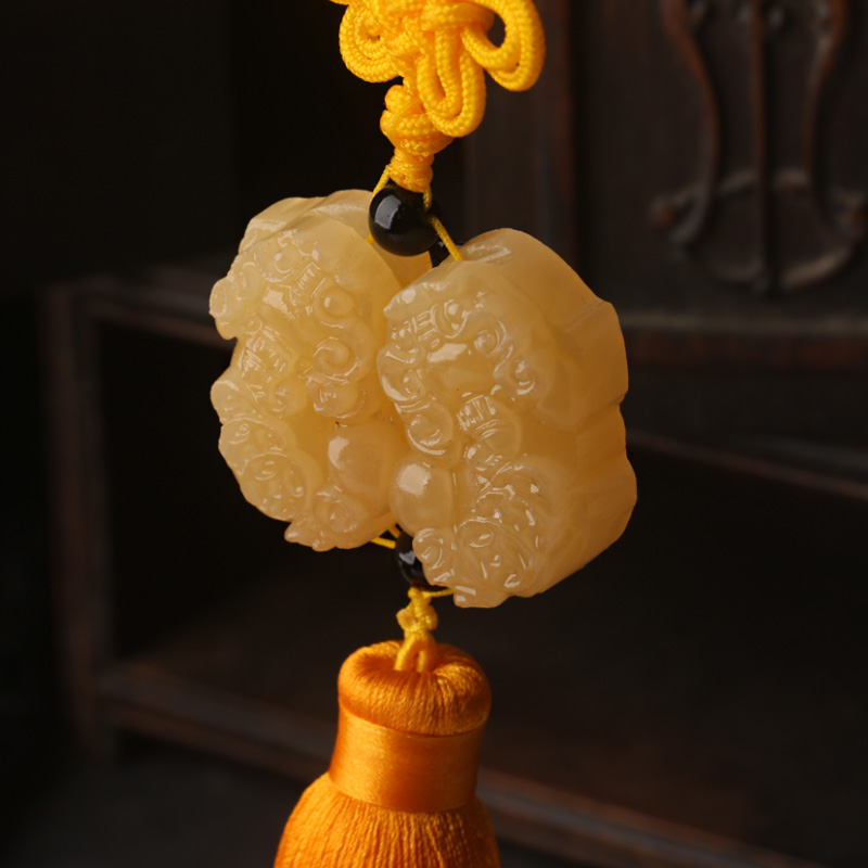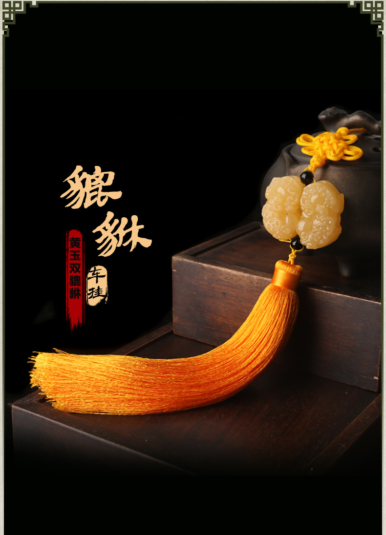 天然黄玉双貔貅车挂★中国结结艺皮丘车内装饰品