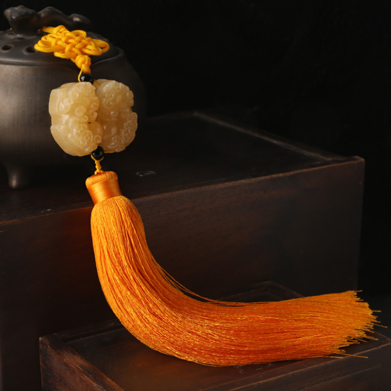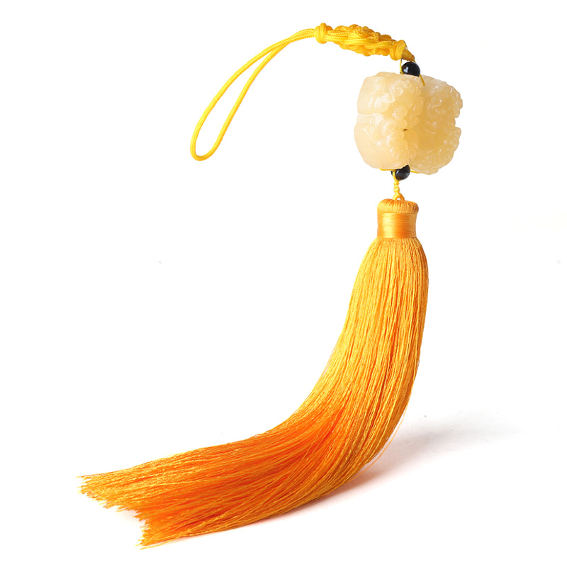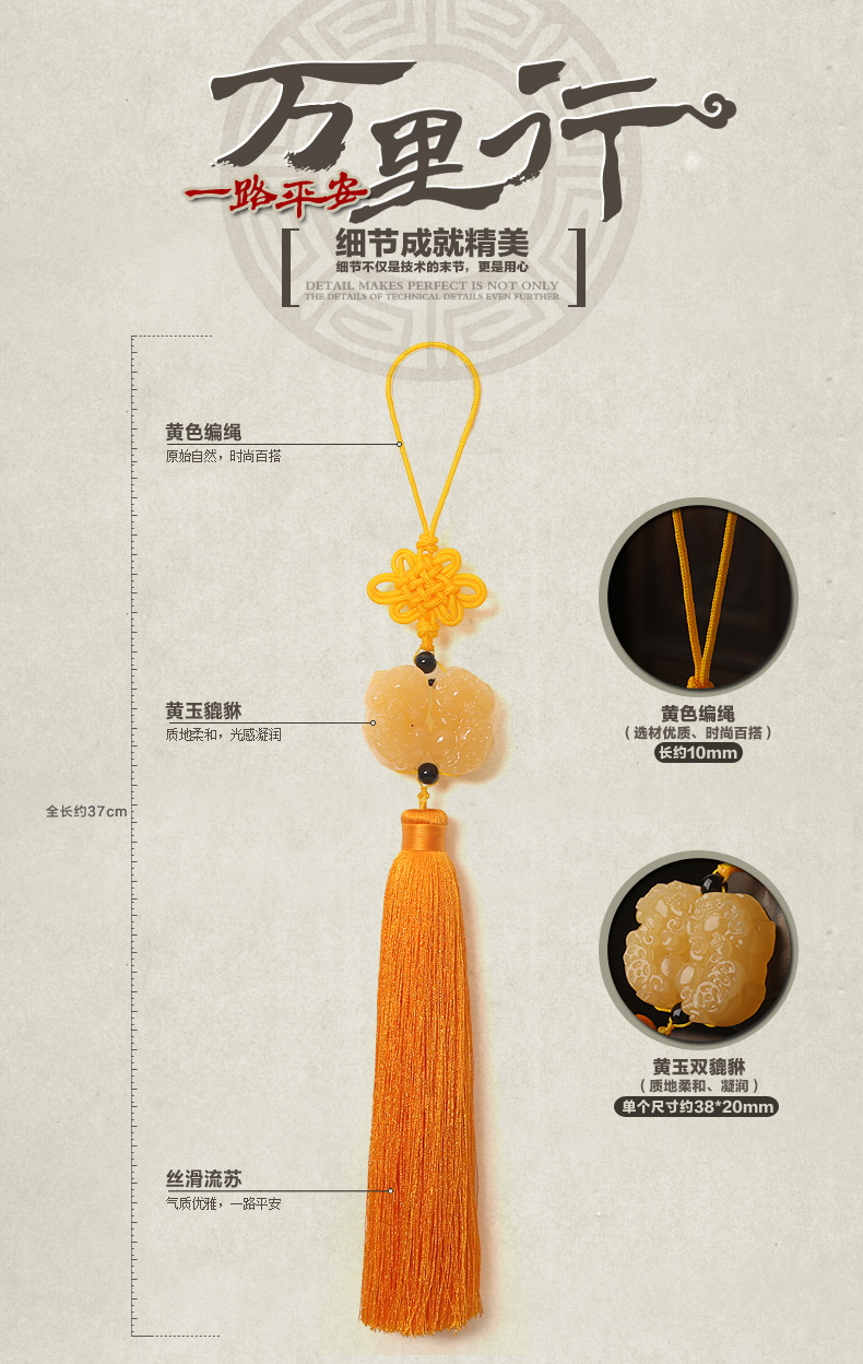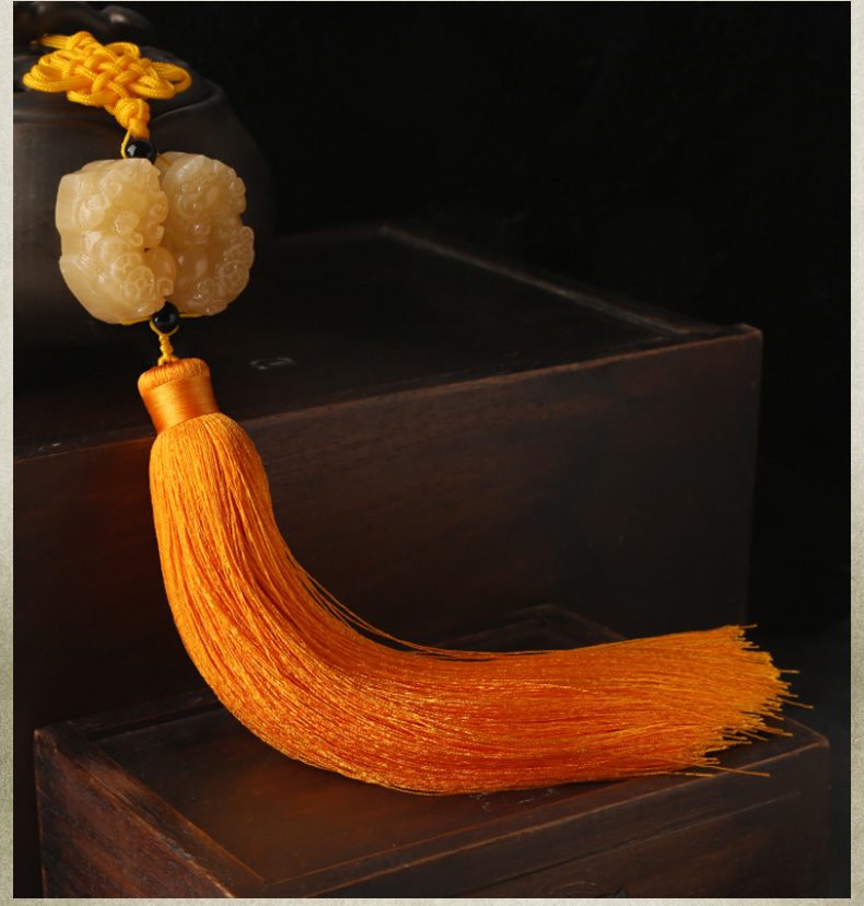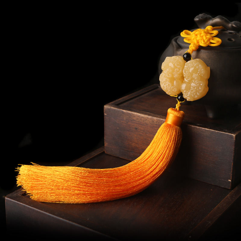 天然黄玉双貔貅车挂★中国结结艺皮丘车内装饰品
