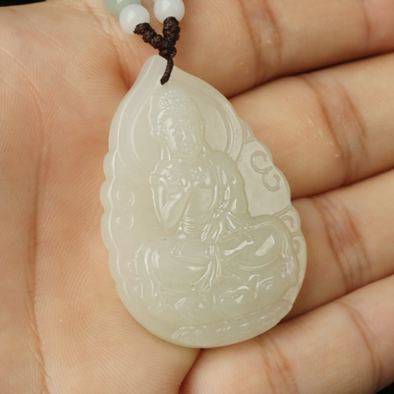 精选和田浅黄玉,细腻温润,玉料干净,纯手工雕刻,工艺精美、大方、庄严,栩栩如生。颜色由浅青白至浅黄不等。